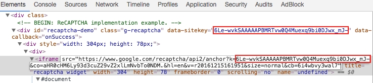 trong mã nguồn của trang web chứa reCAPTCHA V2. Mở bảng điều khiển dành cho nhà phát triển trong trình duyệt của bạn và tìm phần tử có thuộc tính data-sitekey