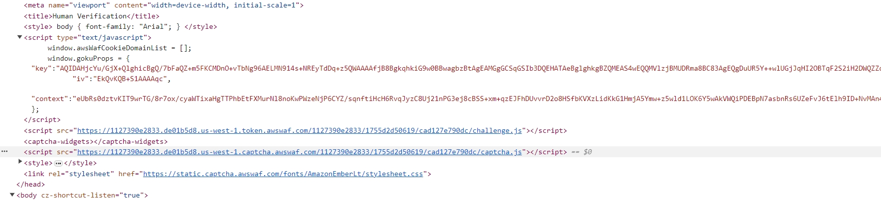 1. Tìm các tham số của Captcha Amazon AWF